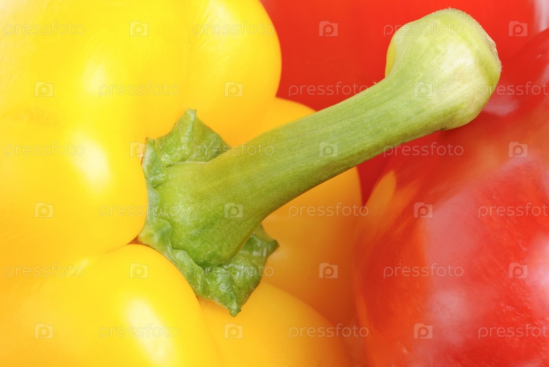 Желтый и красный перцы крупным планом