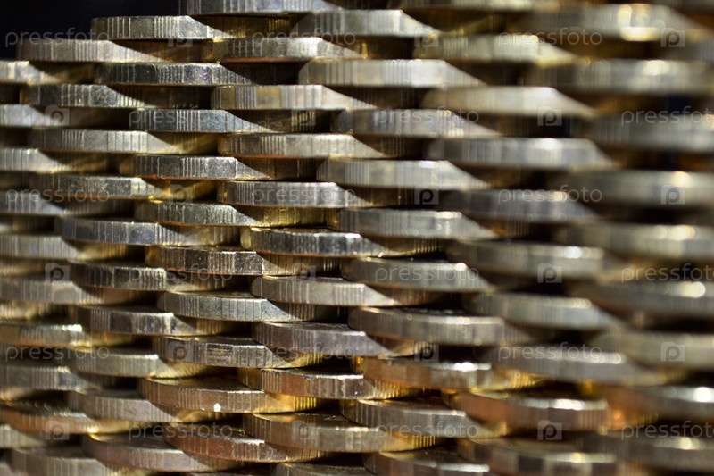 Стена из стальных монет с латунным гальванопокрытием