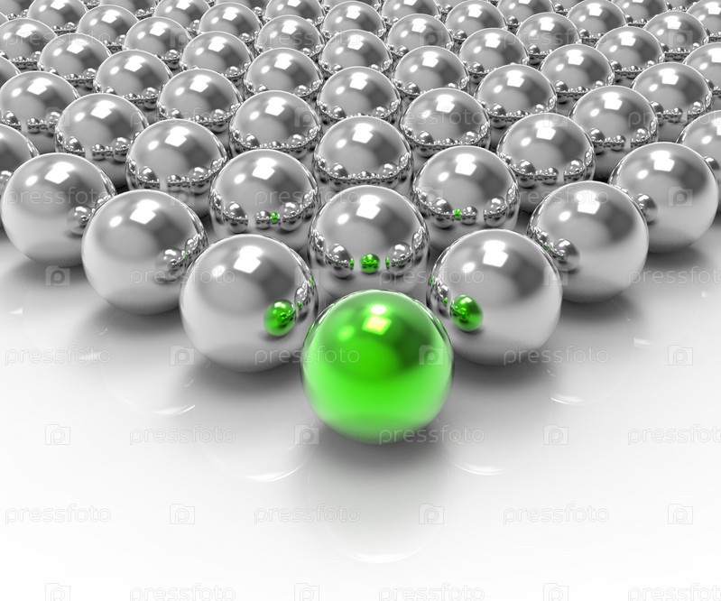 Один зеленый шарик среди серых
