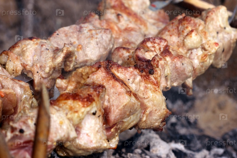 Шашлык на углях крупным планом