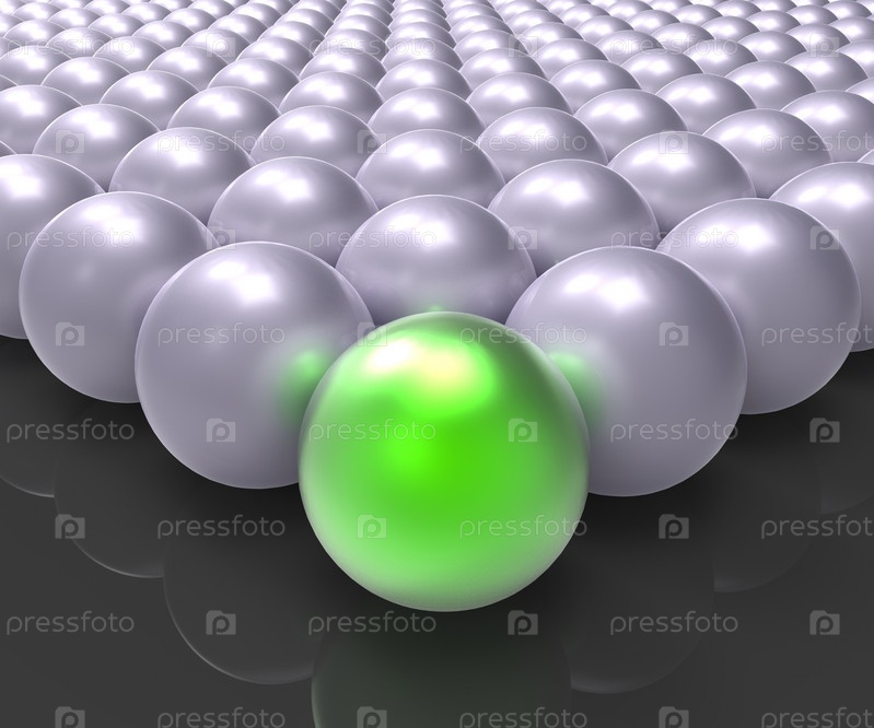 Один зеленый шар среди серых
