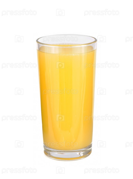 Стакан апельсинового сока на белом фоне