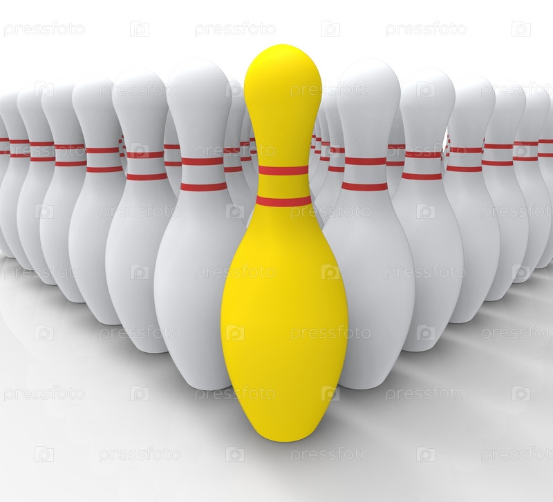 Желтая кегля на фоне белых