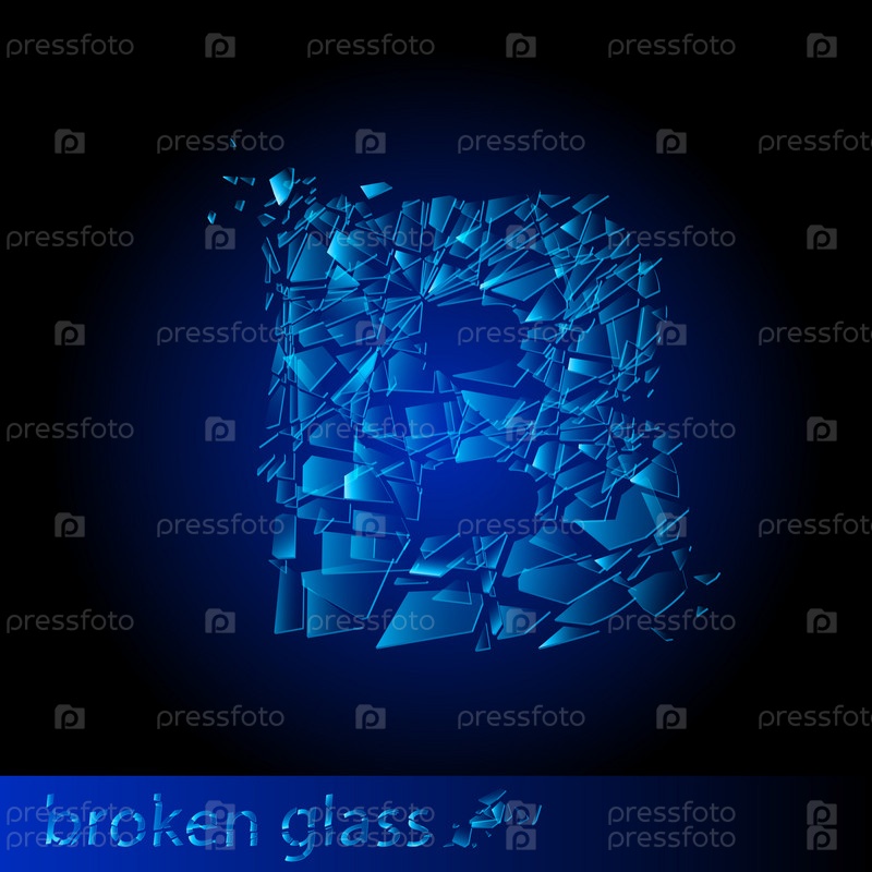 Буква "В" из битого стекла. Иллюстрация на черном фоне