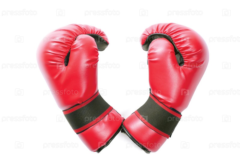 Пара красных боксерских перчаток на белом фоне