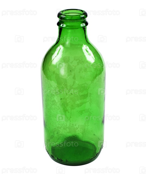 Небольшая зеленая бутылка на белом фоне