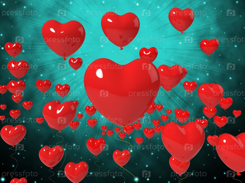 Красные сердца на синем фоне