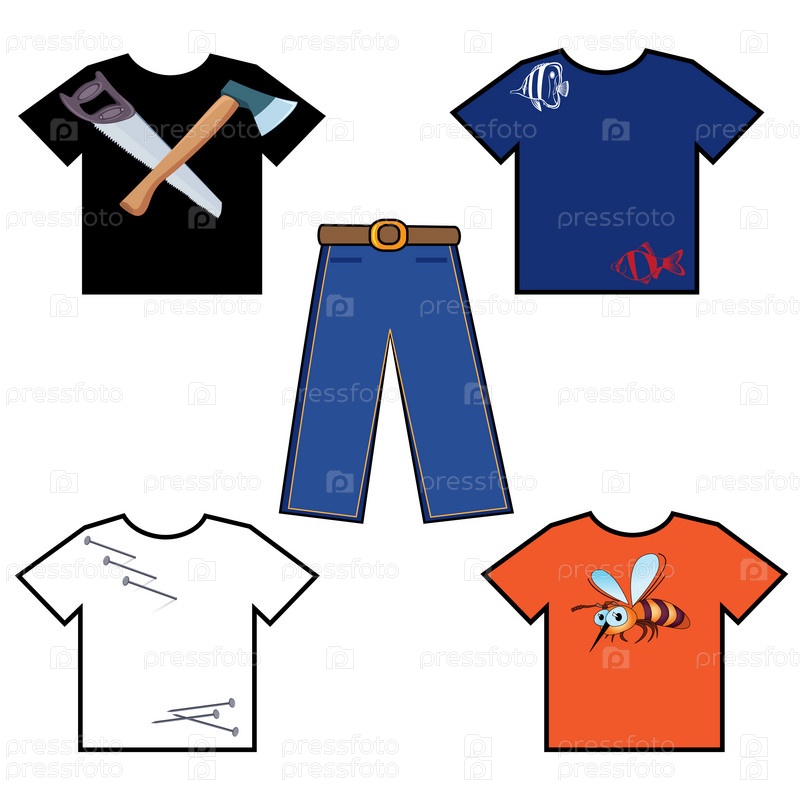 Четыре футболки и брюки, иллюстрация на белом фоне