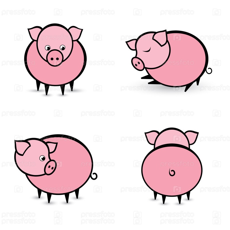 Четыре свиньи в разных положениях, иллюстрация на белом фоне