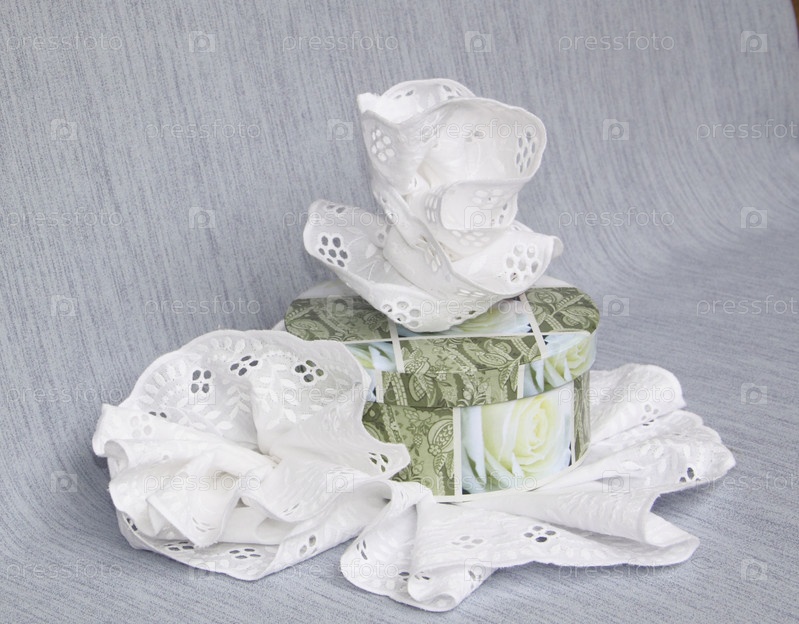 Подарочная коробка и белые салфетки