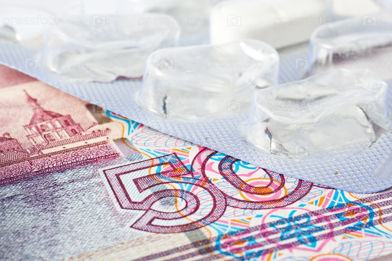 Упаковка таблеток на купюре достоинством 500 рублей