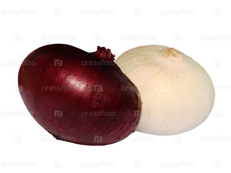 Две большие луковицы на белом фоне
