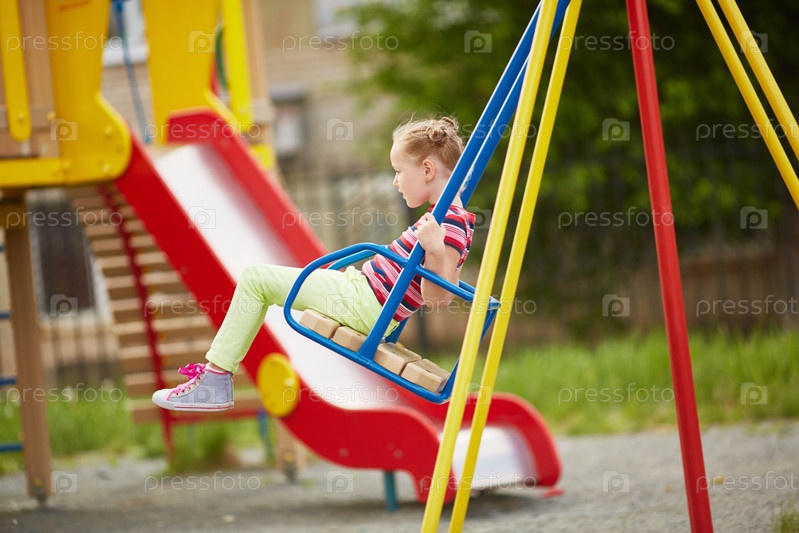 Девочка качается на качелях