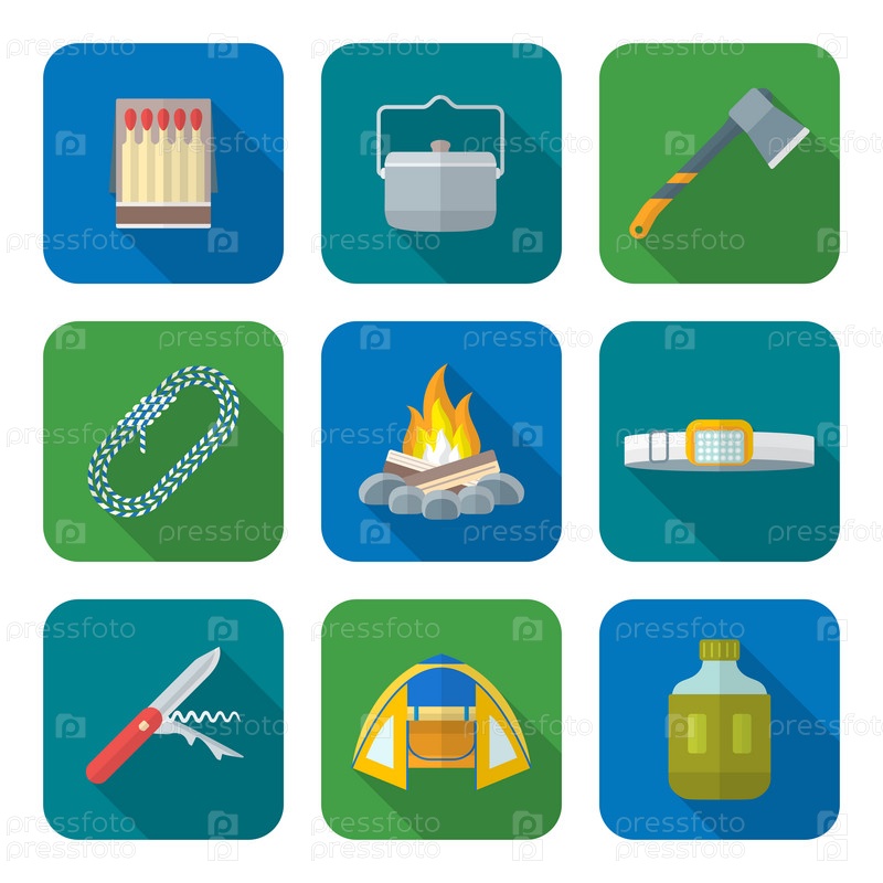 Плоские цветные иконки на тему кемпинга