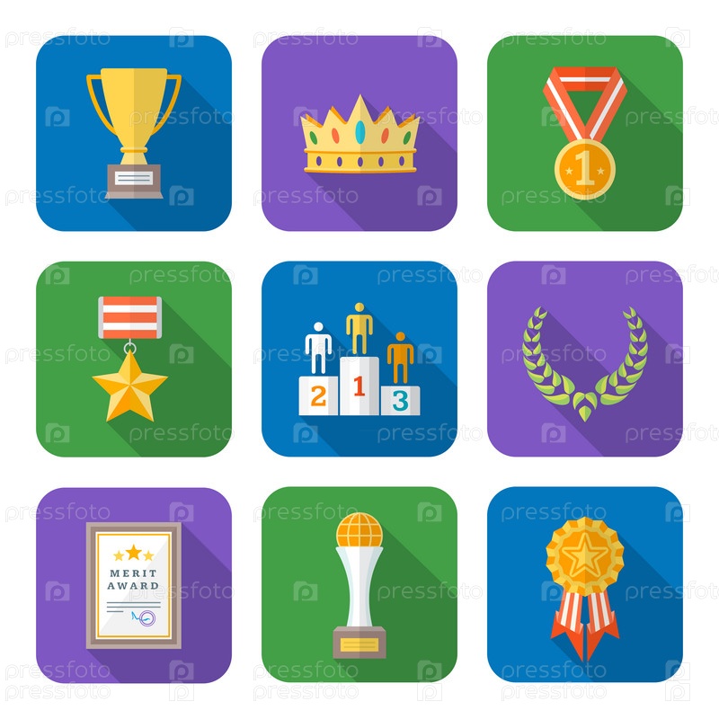 Плоский цветной различные награды символы коллекция иконок