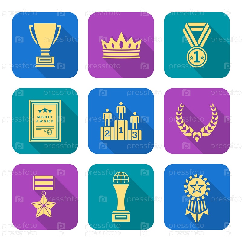 Золото, плоский цветной различные награды символы коллекция иконок