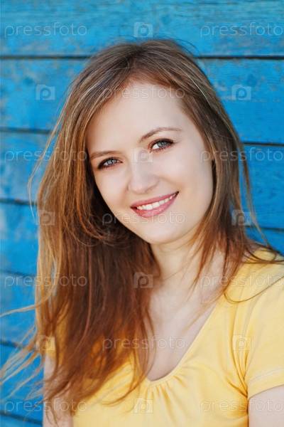 Красивая девушка на фоне старой синей стены