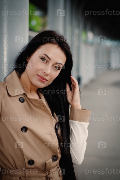 Молодая брюнетка на железнодорожной станции
