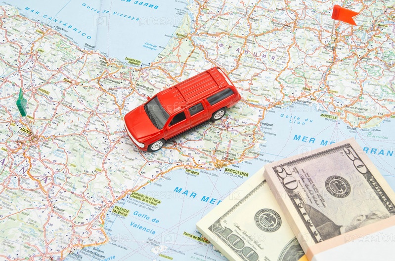 Автомобиль и деньги на карте