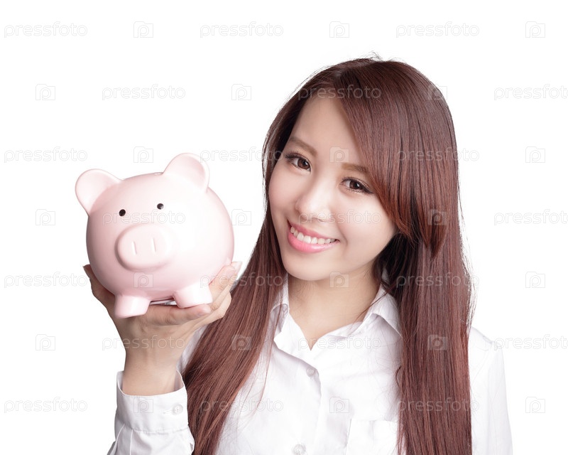 Деловая женщина с копилкой