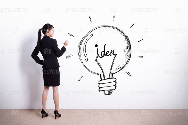 Бизнес-леди с символом идеи