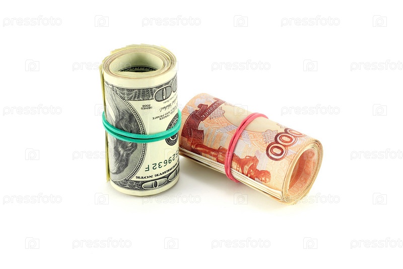Пачка долларов и рублей