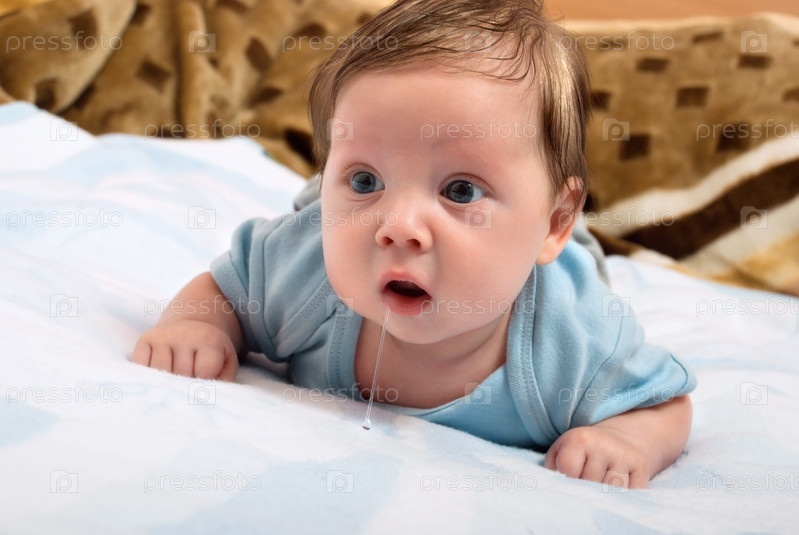 Портрет маленького ребенка, лежащего на кровати