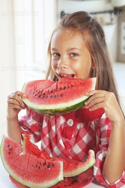 Ребенок ест арбуз