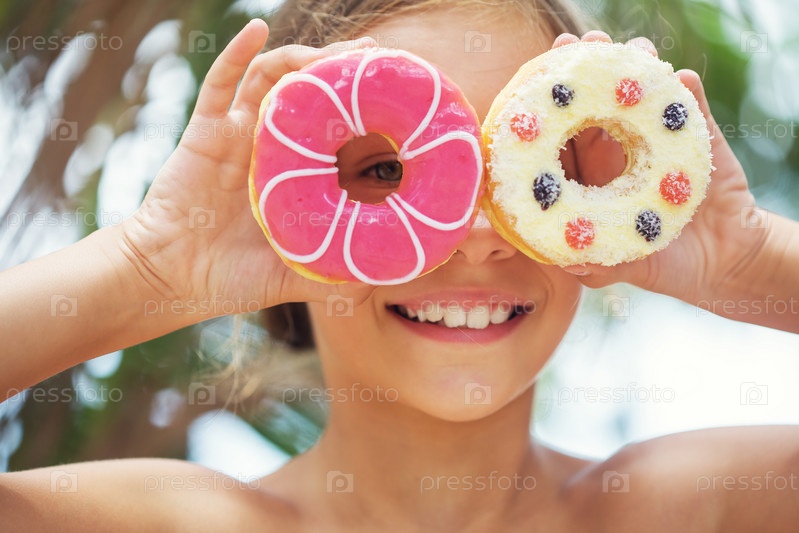 Девочка ест пончики