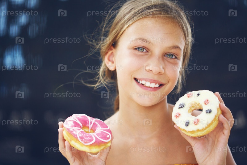 Девочка ест пончики