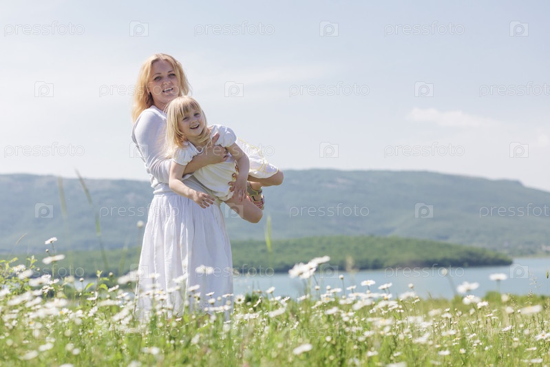 Мать с дочерью на цветочном поле