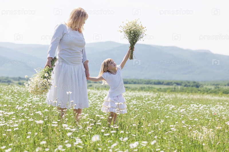 Мать с дочерью на цветочном поле