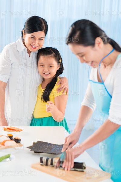 Женщина готовит суши дома