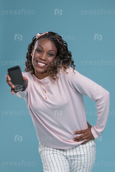 Африканская женщина показывает смартфон