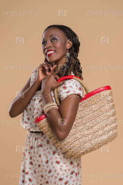 Африканская женщина с соломенной сумкой