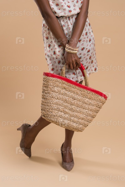 Африканская женщина с соломенной сумкой
