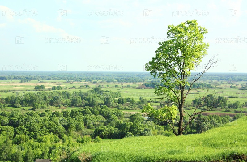 Одинокое дерево на живописной возвышенности