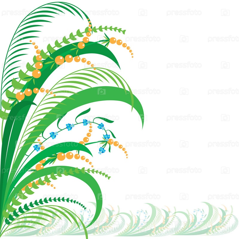 Цветущая трава, иллюстрация на белом фоне