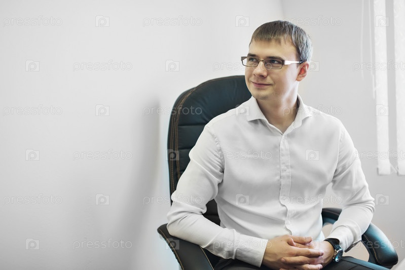 Мужчина в деловом костюме работает в офисе