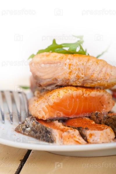 Лосось с салатом из овощей