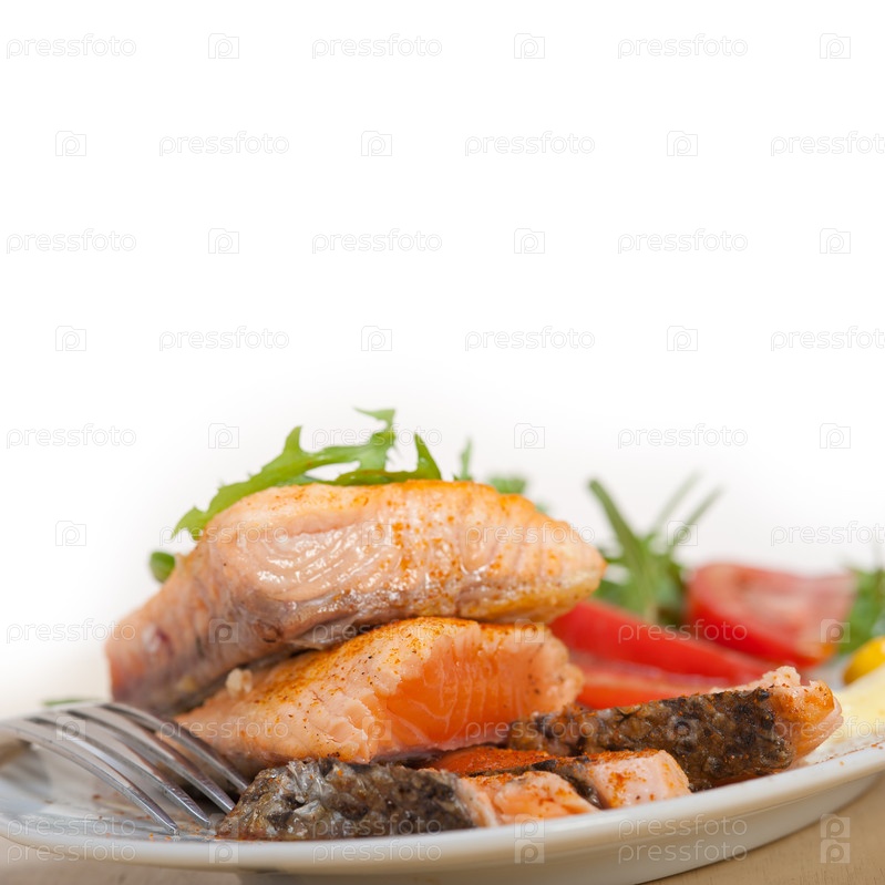 Жареное филе лосося с салатом