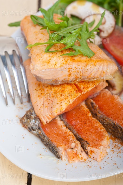 Лосось с салатом из овощей