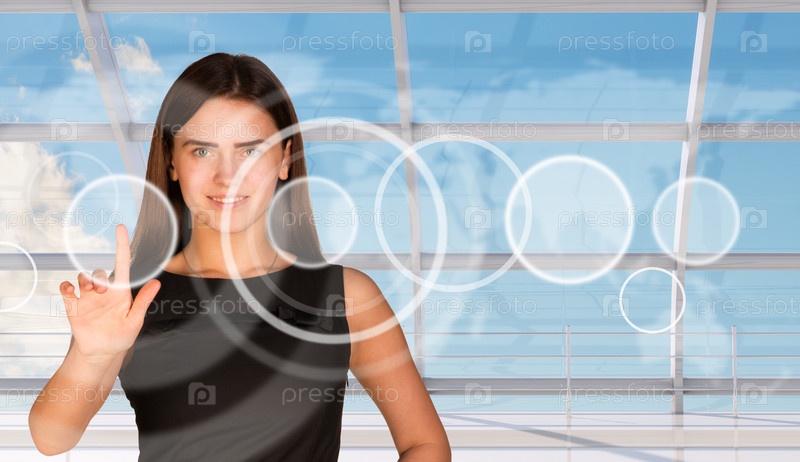 Бизнес-леди нажимает на кнопку