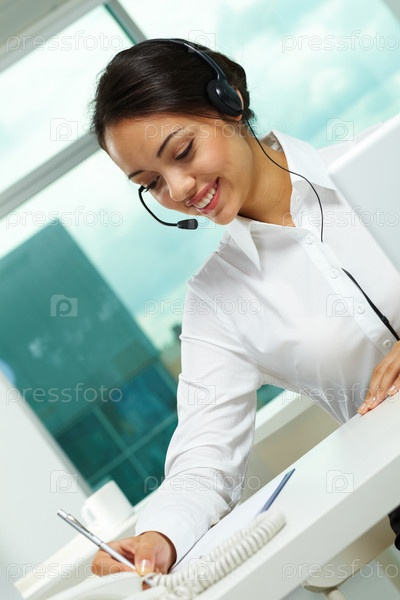 Сотрудница службы техподдержки на рабочем месте