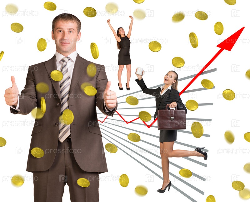 Деловые люди под денежным дождем