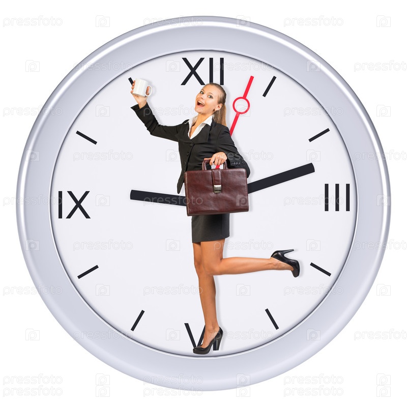 Бизнес-леди, стоящая в центре часов