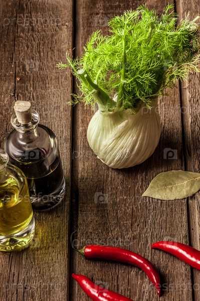 свежий укроп, оливковое масло, бальзамический уксус, стручки красного перца, лавровый лист