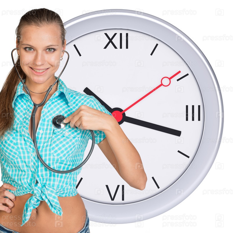 Молодая женщина в центре часов