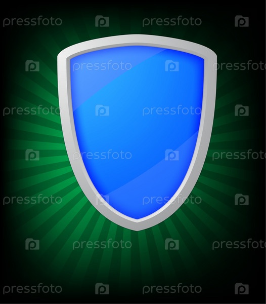 Синий щит на зеленом фоне с лучами