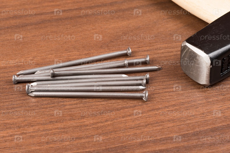 Молоток и гвозди на столе